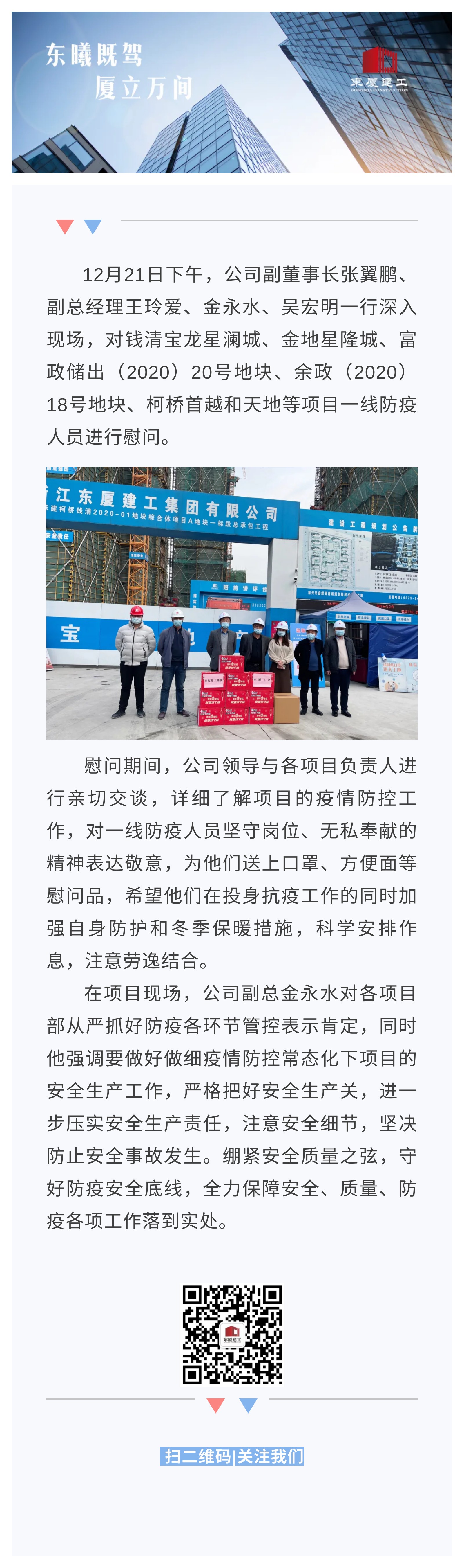 攜手戰(zhàn)疫筑防線 冬至慰問(wèn)暖人心——公司領(lǐng)導(dǎo)慰問(wèn)項(xiàng)目一線防疫員工