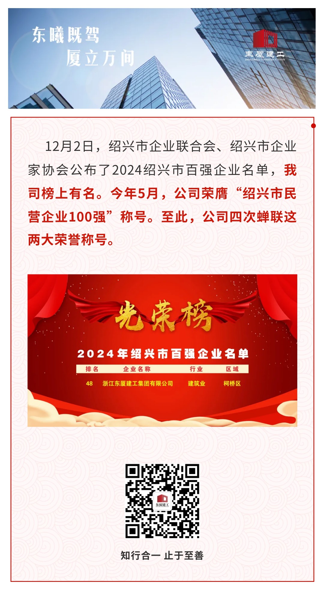 東廈榮譽 | 公司四次蟬聯(lián)2024“紹興市百強企業(yè)”“紹興市民營企業(yè)100強”