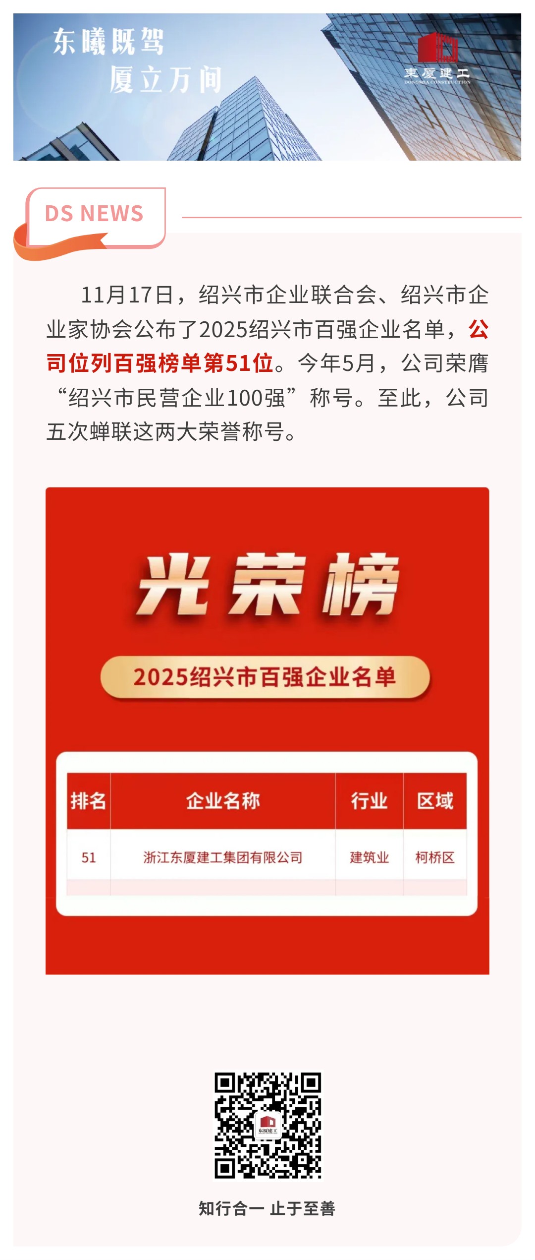 東廈榮譽(yù) | 公司五次蟬聯(lián)“紹興市民營(yíng)企業(yè)100強(qiáng)”稱(chēng)號(hào)