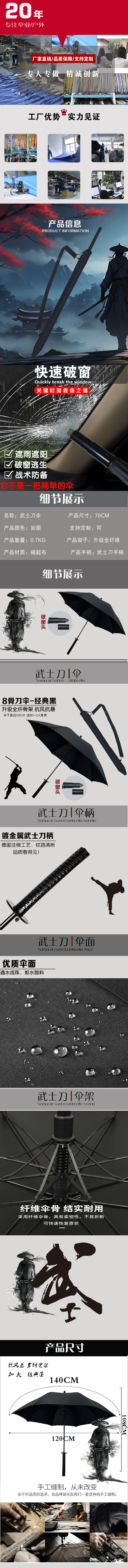 武士傘破窗自救神器 70*8K 超大傘面 長柄武士刀造型應(yīng)急雨傘